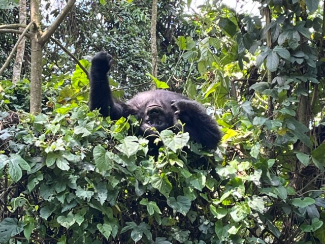 After taking a few photos of the elephant we started our trek. Very similar to the Gorilla trekking there were two trackers who went ahead of us by a couple hours to try and speed up the tracking process. This worked out very well for us as we found where the chimps were within an hour. This time there were only 5 in our group so a bit more intimate. Being as close as we were to the chimps was an experience I will never forget.