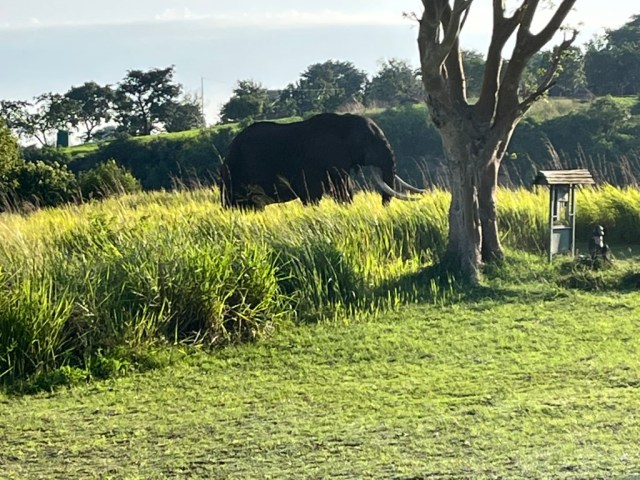 This was my last and final day in Uganda. We started our day with breakfast. After breakfast we made our way to the park where we were trekking with the chimps. Near the entrance of our trek we got to see another elephant grazing in the field.