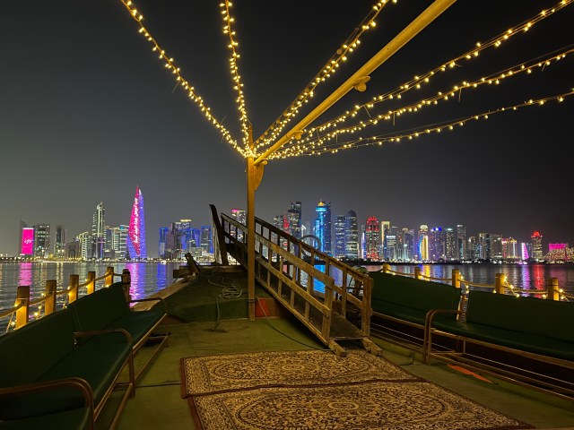 While in the uber the driver suggested a couple other things we could do. One of those things being The Corniche. The Corniche is essentially a waterfront boardwalk. After finishing with the Market I walked to The Corniche. There you see a handful of vendors offering boat rides around the harbour. It was night and the view on the water looked beautiful, so I decided to take a cruise. It wasn’t too busy, so I had the boat to myself. The Doha skyline was amazing from the water.